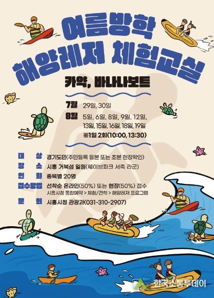 한국소통투데이 관리자 기자 | 시흥시가 거북섬 일원에서 ‘여름방학 해양레저 체험교실’을 7월 29일부터 8월 19일까지 기간 내 12일간 진행한다.