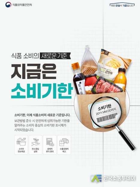 관련 내용으로, 식품 등에 표시되는 ‘유통기한’ 대신 ‘소비기한’을 표시하도록 하는 내용을 담은 '식품 등의 표시·광고에 관한 법률(이하 ’식품표시광고법’)'이 지난 2021년 8월 17일자로 개정되어 2023년 1월 1일부터 본격 시행되고 있다.
