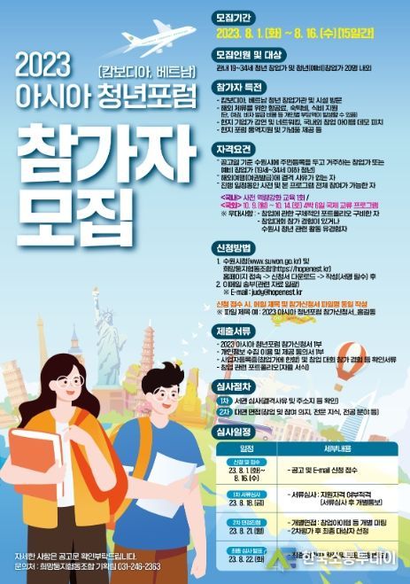 한국소통투데이 관리자 기자 | 수원시가 ‘2023 아시아 청년포럼’에 참가할 청년(예비)창업가 20명을 8월 16일까지 모집한다.