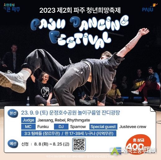 한국소통투데이 관리자 기자 | 파주시는 9월 9일 운정호수공원 잔디광장에서 열리는 ‘제2회 파주 청년희망축제’의 주요 프로그램인 ‘파주 댄싱페스티벌(PDF)’의 참가팀을 모집한다.