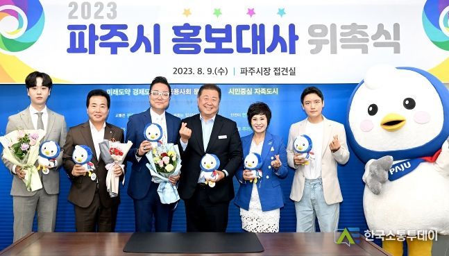 한국소통투데이 관리자 기자 | 파주시는 9일 가수 송민준, 아나운서 김가영, 유튜버 이한길 교사, 가수 김성대 등 4명을 홍보대사로 신규 위촉하고, 가수 김대훈과 서향 등 2명을 재위촉해, 위촉장을 전달했다.