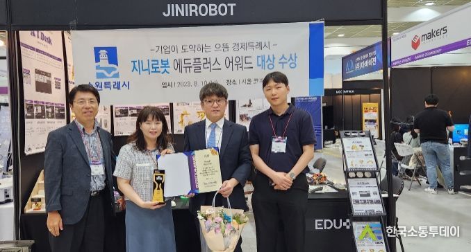 10~13일 코엑스에서 열리는 ‘제14회 에듀플러스위크 미래교육 박람회’에는 하반기 참여업체 ‘지니로봇’이 참석, 10일 박람회에서 열린 ‘2023 에듀플러스 어워드’ 시상식에서 최고상인 대상을 받았다.
