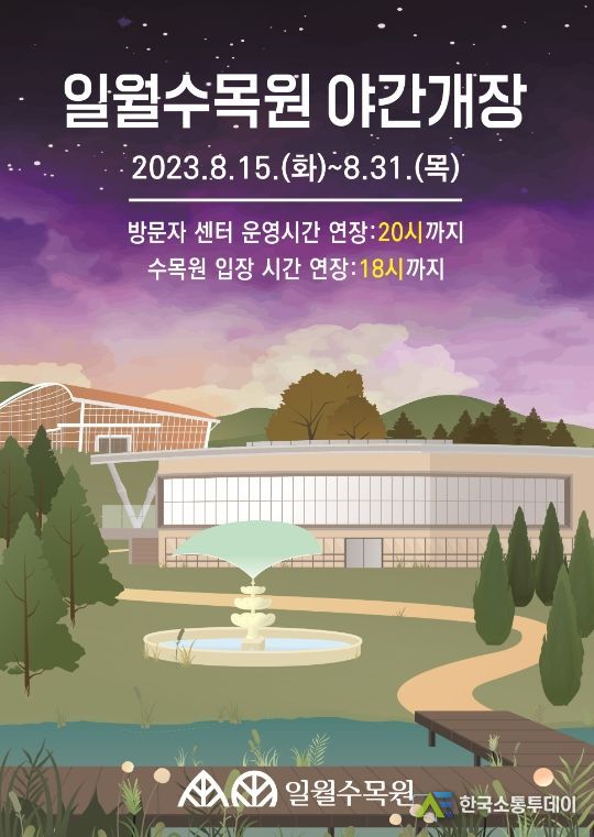 한국소통투데이 관리자 기자 | 수원시가 하절기를 맞아 8월 15일부터 31일까지 일월·영흥 수목원을 야간에 연장 운영한다.