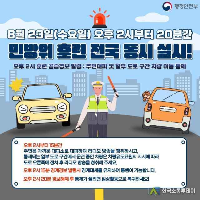 훈련 공습경보 발령과 동시에 군작전로 및 응급·복구·구조 차량 등의 비상차로 확보를 위해 경찰 지시하에 15분간 차량 이동이 통제되며, 운행 중인 차량은 도로 오른쪽에 정차 후 차내에서 훈련 상황을 라디오 등을 통해 청취해야 한다.