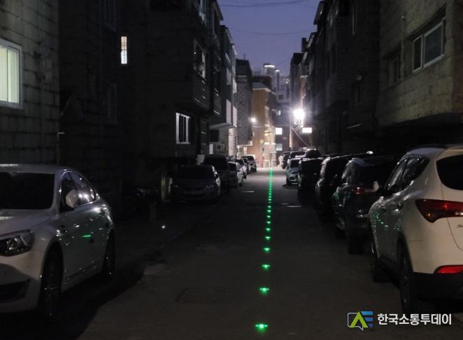 안심귀갓길에는 로고젝터1) , 쏠라도로표지병2) , 미끄럼 방지 포장재 등을 설치했다.