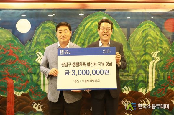 한국소통투데이 관리자 기자 | 수원시 팔달구 사통팔달협의회(회장 정찬해)는 지난 21일, 생활체육 활성화에 힘써달라며 팔달구청에 300만원의 후원금을 전달했다.