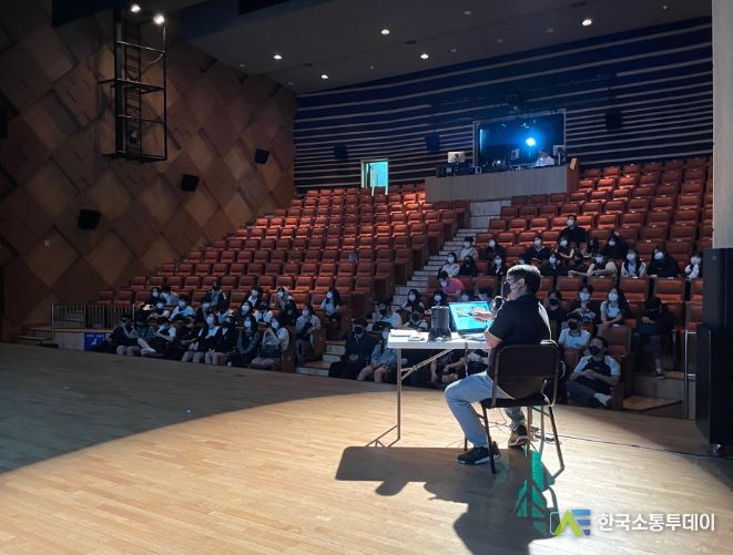 이번 교육은 무대 및 조명의 기초 이론과 실습 초급 단계로 ▲조명기 종류 및 기능 학습 ▲조명기 빛 맞추기, 색 입히기 운영 및 체험 ▲프로시니엄 극장 구조 이론 학습 ▲상부 장치의 구동 실습 ▲오케스트라피트 구동 탑승 체험 ▲프리쇼 시연 등 6개 프로그램을 진행한다. 수원SK아트리움 대공연장에서 87명의 고등학생과 함께한다.