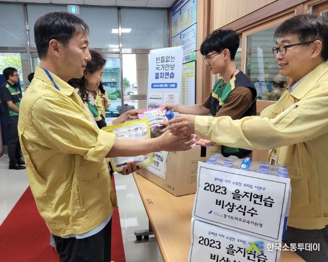 을지연습 3일차인 23일 파주교육지원청에서 직원들은 전시 지역 내 수질오염 발생에 따른 지역 내 식량 공급이 어려운 상황을 가정하여 비상식량을 체험하는 훈련을 실시했다.