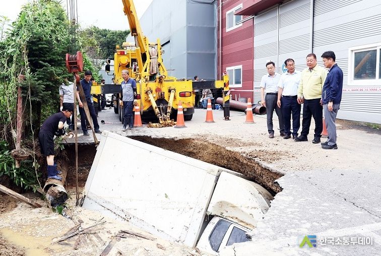 안전총괄과, 도로건설과, 도로관리사업소 등 파주시 관계 부서는 싱크홀(땅 꺼짐) 현장을 점검하며 중장비 등을 동원해 신속한 복구를 지원하고 있다.