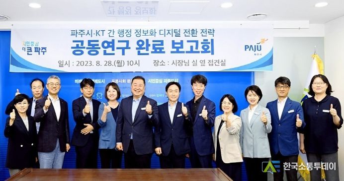 한국소통투데이 관리자 기자 | 파주시는 시민이 체감하는 행정 서비스 혁신을 위해 ㈜케이티와 ‘파주시 행정 정보화 디지털 전환(DX) 전략’을 공동연구하고, 28일 완료 보고회를 개최했다.