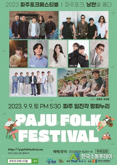 한국소통투데이 관리자 기자 | 파주시가 주최하고 파주도시관광공사가 주관하는 ‘2023 파주포크페스티벌’이 오는 9월 9일 임진각 평화누리 야외공연장에서 개최된다.