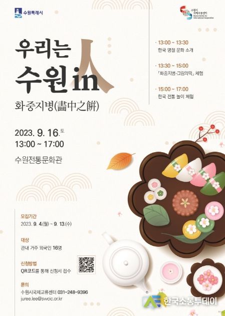 한국소통투데이 관리자 기자 | 수원시국제교류센터가 제3회 수원시 외국인 지역이해 프로그램 ‘우리는 수원 in(人) - 화중지병(畵中之餠)’에 참여할 관내 거주 외국인 16명을 9월 13일까지 모집한다.
