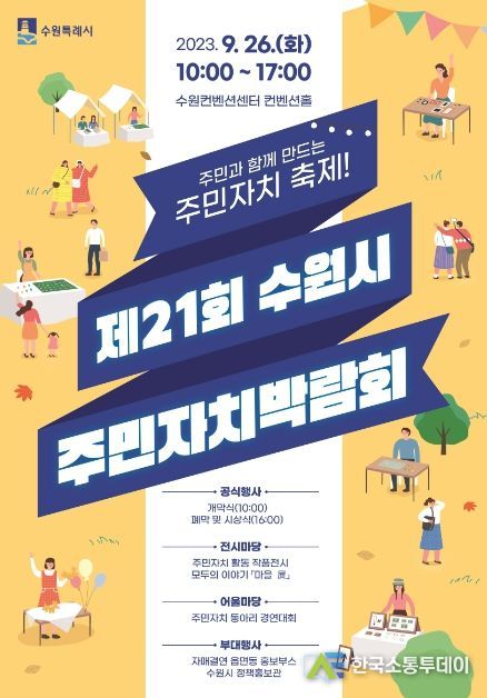 한국소통투데이 관리자 기자 | 수원시가 9월 26일 오전 10시부터 오후 5시까지 수원컨벤션센터에서 제21회 수원시 주민자치박람회를 개최한다.