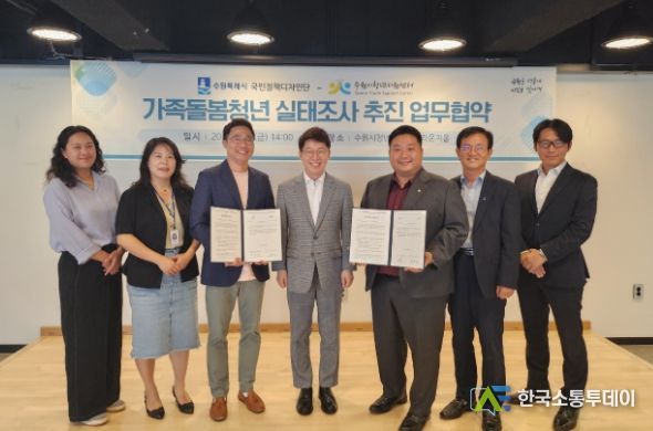 한국소통투데이 관리자 기자 | 수원시 국민정책디자인단과 수원시청년지원센터가 8일 인계동 수원시청년지원센터에서 ‘가족돌봄청년 실태조사 추진을 위한 업무협약’을 체결하고, 협력을 약속했다.