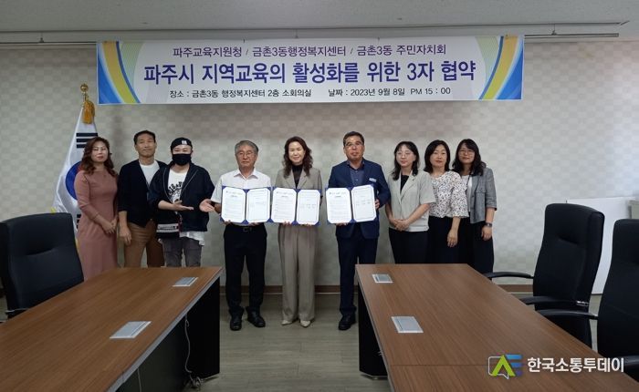 한국소통투데이 관리자 기자 | 파주교육지원청은 2023년 9월 8일 금촌3동 행정복지센터, 금촌3동 주민자치회와 학생주도활동 공간 활용을 위한 업무협약을 체결했다.