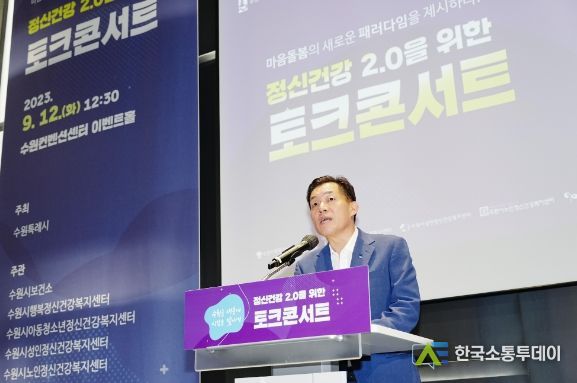 수원시가 12일 수원컨벤션센터 이벤트홀에서 연 ‘정신건강 2.0을 위한 토크콘서트’에서 인사말을 한 이재준 시장은 “수원시는 1996년 경기도 최초로 정신건강사업을 시작해 전국에서 유일하게 정신건강 관련 센터 6개소를 운영하는 ‘정신건강 수도’”라며 “부족한 인프라와 인력에도 불구하고 ‘24시간 정신응급 대응체계’를 만들어 운영했다”고 밝혔다.
