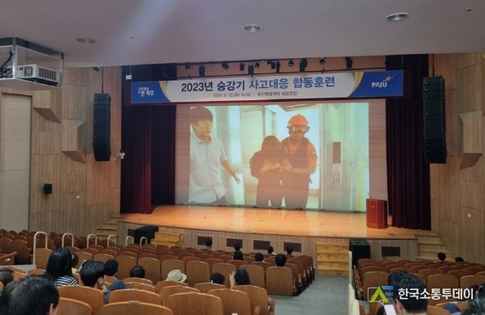 한국소통투데이 관리자 기자 | 파주시는 9월 12일 문산행복센터 대공연장에서 ‘2023년 승강기 사고대응 합동훈련’을 실시했다.