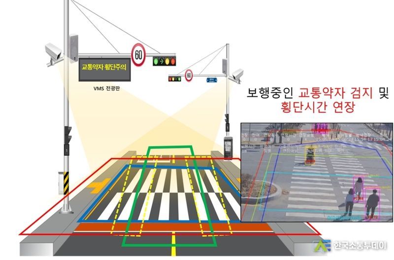 스마트횡단시스템은 노인이나 어린이, 장애인 등 교통약자가 횡단보도를 설정된 시간 안에 다 건너지 못할 경우, 보행신호를 최대 10초까지 자동으로 연장해준다. 인공지능 기술을 접목한 시스템이 일반인에 비해 보행속도가 느린 교통약자들의 어려움을 감안하고 배려해 사고 위험으로부터 이들의 안전을 지켜주는 것이다.