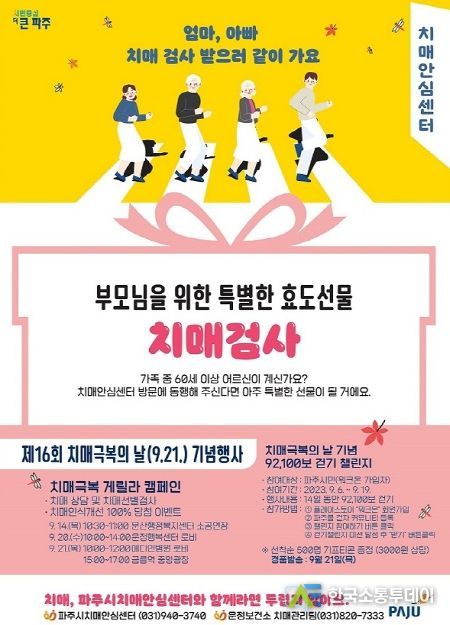 한국소통투데이 관리자 기자 | 파주시치매안심센터에서는 파주시민을 대상으로 9월 14일부터 21일까지 1주간 제16회 치매극복의 날 주간행사를 진행한다.