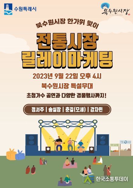 한국소통투데이 관리자 기자 | 수원시는 22일 오후 4시부터 6시까지 북수원시장 일원(장안구 파장로82번길)에서 ‘전통시장 릴레이마케팅’ 행사를 연다.