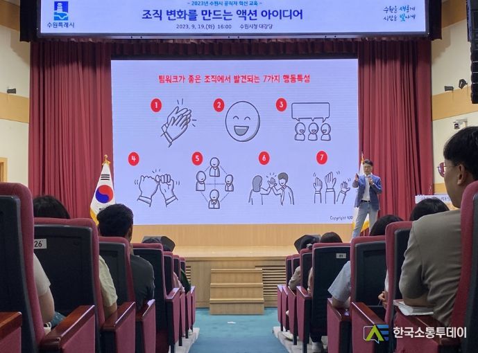 한국소통투데이 관리자 기자 | 수원시가 19일 시청 대강당에서 대면·비대면 병행 방식으로 ‘2023년 수원시 공직자 혁신 교육’을 열었다.