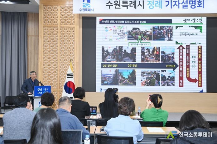 이장환 수원시 안전교통국장은 20일 시청 중회의실에서 열린 ‘민선 8기 정례 언론브리핑’에서 ‘생태교통수원 뉴페스타’와 수원시의 생태교통 정책을 소개했다.