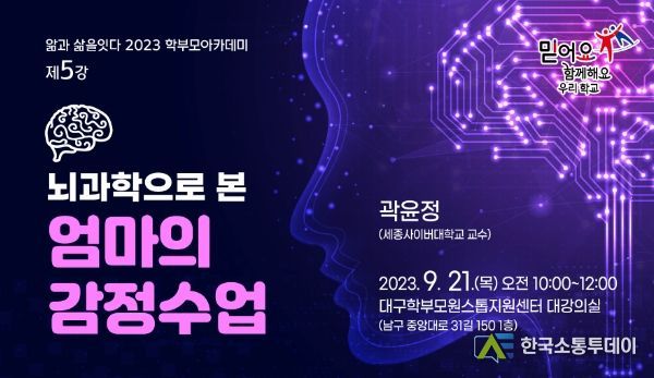 한국소통투데이 관리자 기자 | 대구시교육청은 오는 9월 21일 오전 10시, 대구학부모원스톱지원센터(대구미래교육연구원 內)에서 ‘2023. 학부모 아카데미 제5강’을 운영한다.