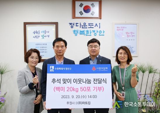 한국소통투데이 관리자 기자 | 수원시 장안구에 위치한 ㈜마트킹에서 20일, 추석 명절을 맞아 장안구에 20㎏ 백미 50포를 기부했다.