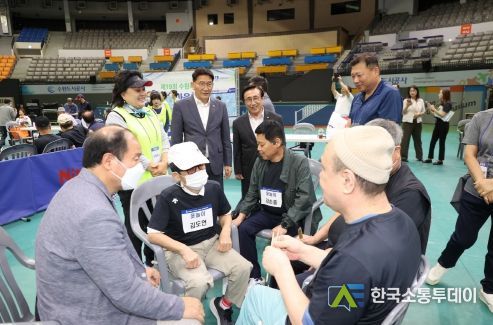 한국소통투데이 관리자 기자 | 수원시의회 김기정 의장과 이재식 부의장을 비롯한 시의원들은 21일 수원종합운동장에서 열린 ‘제19회 수원특례시 장애인한마음체육대회’에 참석한 선수단과 응원에 나선 보호자 및 시민들을 격려했다.