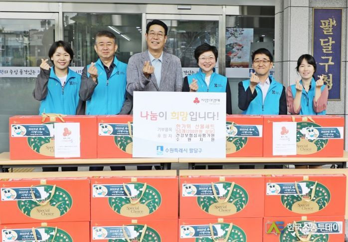 한국소통투데이 관리자 기자 | 수원시 팔달구는 지난 21일 건강보험심사평가원 수원지원으로부터 관내 취약계층을 돕기 위한 한가위 선물세트 50개(총200만원 상당)의 후원물품을 기부받았다.