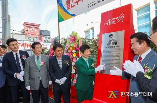 한국소통투데이 관리자 기자 | 대구 중구는 23일 향촌동수제화골목(향촌동 9-2 일원)에서 ‘빨간구두 아가씨 노랫말 거리 조형물 제막식’을 개최했다.
