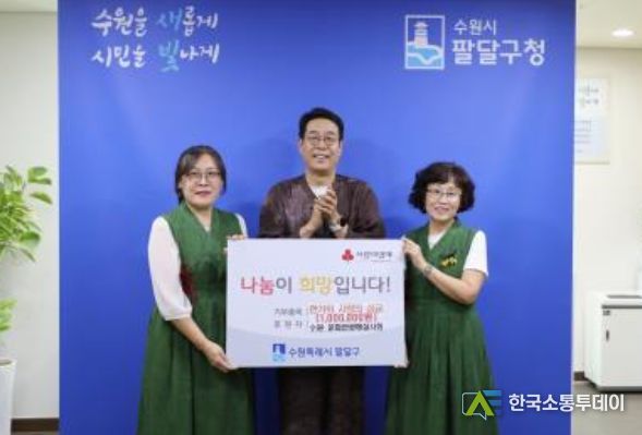 한국소통투데이 관리자 기자 | 수원시 팔달구는 지난 22일 팔달구청장실에서 수원시 문화관광해설사회와 함께 한가위 저소득아동 성금(1,000,000원) 전달식을 가졌다.