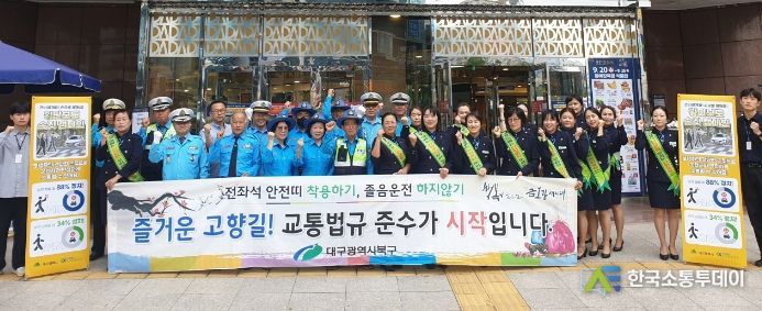 한국소통투데이 관리자 기자 | 대구 북구청은 9월 25일~26일 14시에 칠곡네거리 및 침산네거리에서 명절 연휴 동안 교통소통을 원활히 하고 교통편의를 제공하기 위하여 녹색어머니회, 모범운전자회와 합동으로 추석맞이 교통안전 캠페인을 실시한다.