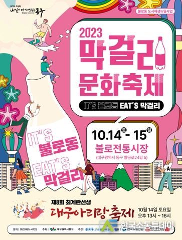 한국소통투데이 관리자 기자 | 제1회 ’2023 막걸리문화축제‘가 오는 14일부터 15일 불로전통시장에서 개최된다. 지난해 프리행사로 개최된 막걸리 축제에 이어 공식으로 개최되는 행사다.