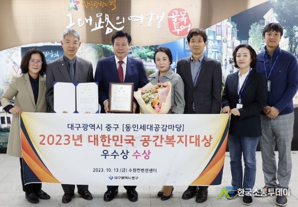한국소통투데이 관리자 기자 | 대구 중구는 13일 수원컨벤션센터에서 열린 ‘2023 대한민국 공간복지대상’ 시상식에서 다양한 세대를 아우르는 커뮤니티 공간인 ‘동인세대 공감마당 조성’으로 우수상을 수상했다.