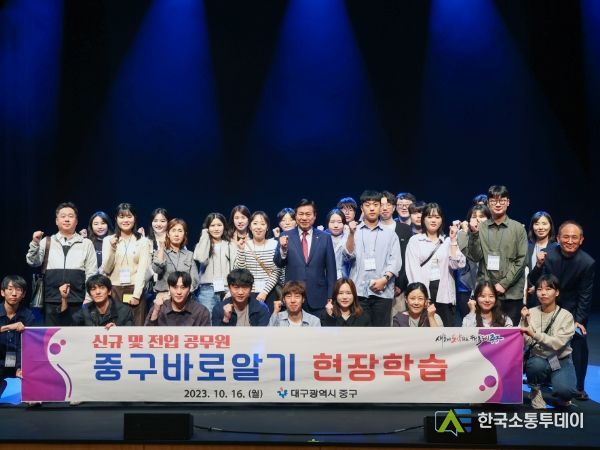 한국소통투데이 관리자 기자 | 대구 중구는 16일 신규 및 전입 공무원 28명을 대상으로 구정에 대한 이해를 넓히고 중구 공무원으로서의 소속감을 키우고자 ‘중구 바로 알기 현장학습’을 실시했다.
