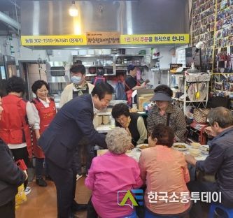 한국소통투데이 관리자 기자 | 부산 중구 부평동에 소재한'깡통골목 원조 비빔당면'은 지난 16일 대청동과 보수동 어르신 각 50명, 광복동 어르신 30명을 모셔서 비빔당면을 대접했다.
