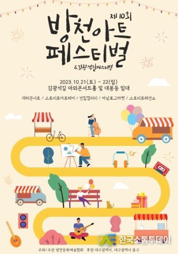 한국소통투데이 관리자 기자 | 대구 중구가 주최하고, 방천문화예술협회가 주관하는 제10회 방천아트페스티벌(김광석길 페스티벌)’이 오는 21, 22일 양일간 김광석길과 대봉동 일대에서 개최된다.