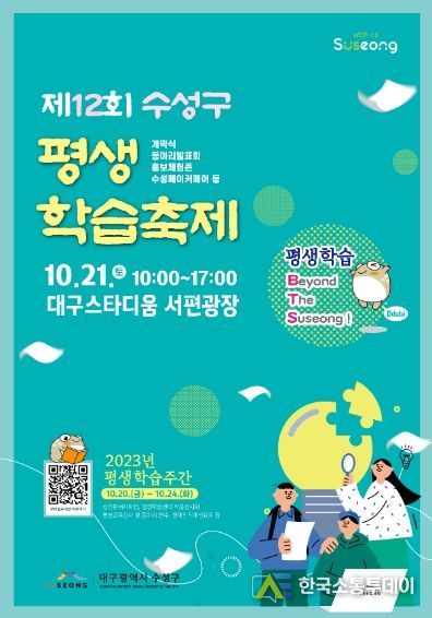 한국소통투데이 관리자 기자 | 대구 수성구는 오는 20일부터 24일까지 5일간을 수성구 평생학습주간으로 지정하고, 21일 대구스타디움 서편광장에서 ‘제12회 수성구 평생학습축제’를 개최한다.