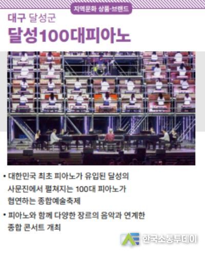 한국소통투데이 관리자 기자 | 문화체육관광부는 10월 17일 윤석열 정부의 국정목표인‘대한민국 어디서나 살기 좋은 지방시대’를 이행하기 위해 발표한‘지방시대 지역문화정책 추진전략’의 후속조치로 추진한 로컬100(지역문화매력 100선)에'달성 100대 피아노'를 선정(지역문화 상품·브랜드)했다.