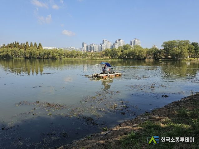 한국소통투데이 관리자 기자 | 수원시가 장안구 율천동에 위치한 일월저수지의 수생식물 마름, 물상추 등을 정비했다.