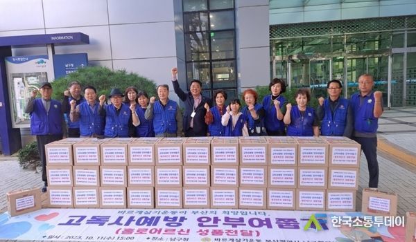 한국소통투데이 관리자 기자 | 바르게살기운동 부산 남구협의회는 지난 10월 11일 부산 남구청에서 회원 20여 명이 참여한 가운데, ‘고독사 예방 안부 여쭙기’ 성품 전달 행사를 개최했다.