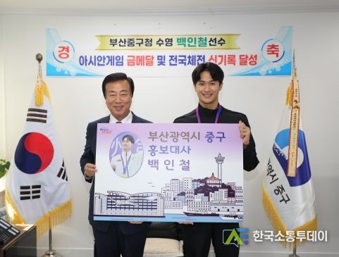 한국소통투데이 관리자 기자 | 부산 중구는 20일 제19회 항저우 아시안게임 금메달리스트인 백인철 수영선수를 구청으로 초대해 격려하고 중구 홍보대사로 위촉했다.