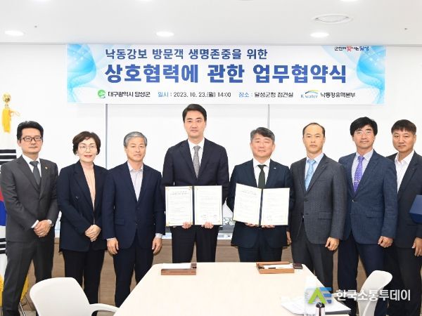 한국소통투데이 관리자 기자 | 달성군은 지난 23일, 달성군청 군수실에서 한국수자원공사 낙동강유역본부와 '낙동강보 방문객 생명존중을 위한 상호협력에 관한 업무협약'을 체결했다.