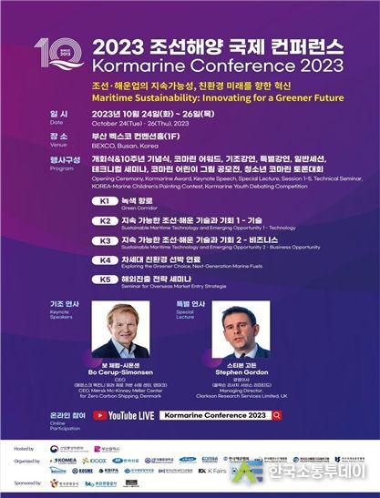 기조강연에는 보 체럽-시몬센 메르스크 맥킨니 뫼러 제로 카본 쉬핑센터 최고경영자(Maersk CEO)가 연사로 나서며, 스티브 고든 클락슨 리서치 서비스 리미티드 경영이사도 특별연사로 참여한다.