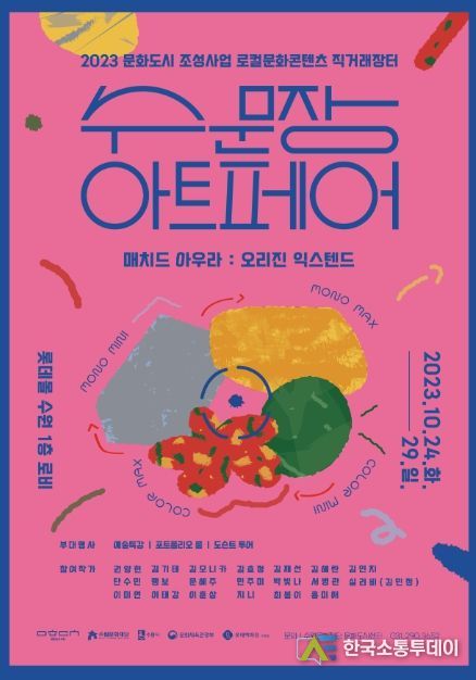 한국소통투데이 관리자 기자 | 수원문화재단은 2023 로컬문화콘텐츠 직거래 장터 '수문장 아트페어'를 오는 10월 24일부터 29일까지 6일간 롯데몰 수원 1층 로비에서 개최한다. '수문장 아트페어'는 예술작품 전시 및 판매를 통하여 청년작가의 활동기반을 확장하고, 수원시 내의 미술 유통시장을 형성하며 수원의 대표적인 아트페어 브랜드로 성장을 도모하고자 기획됐다.