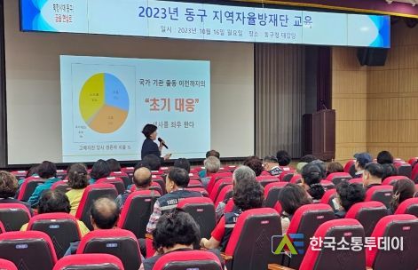 한국소통투데이 관리자 기자 | 부산 동구는 지난 16일 구청 대강당에서 지역자율방재단원을 대상으로 방재단의 재난 단계별 임무와 역할 등에 대한 교육을 실시했다.