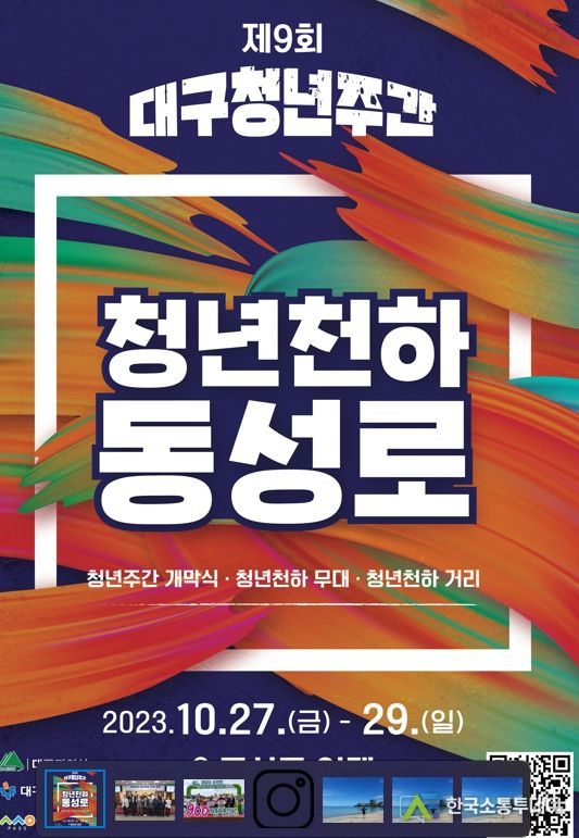 한국소통투데이 관리자 기자 | 대구시와 대구시청년센터는 ‘2023 대구청년주간’ 행사를 10월 27일부터 29일까지 3일간 동성로 일대에서 ‘청년천하 동성로’라는 슬로건으로 청년과 시민이 함께 즐길 수 있는 축제로 개최한다.