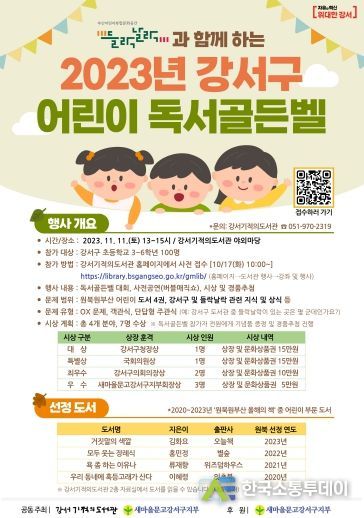 한국소통투데이 관리자 기자 | 부산 강서구는 11월 11일 강서기적의도서관 야외마당에서 지역 어린이 100명을 대상으로 독서골든벨 행사를 개최한다.
