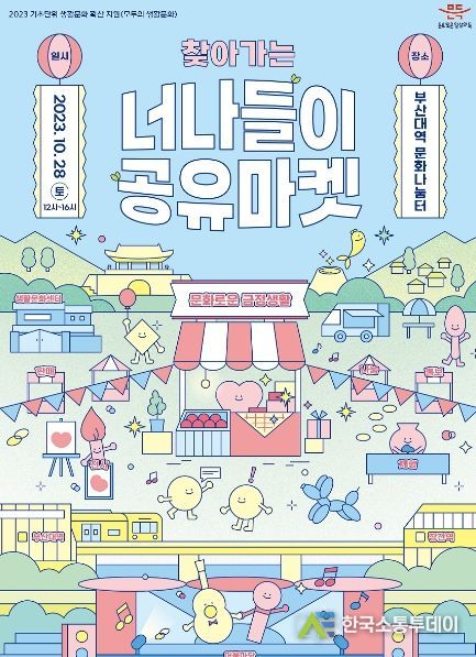 한국소통투데이 관리자 기자 | 부산시 금정구 금정문화재단이 오는 28일 정오부터 16시까지, 부산대역 문화나눔터(야외공연장)에서 ‘찾아가는 너나들이 공유마켓 3차’를 개최한다.